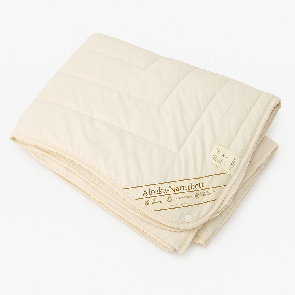 Unsere Alpaka-Steppdecke „Sommer / Ganzes Jahr“ verbindet Leichtigkeit mit Funktion: